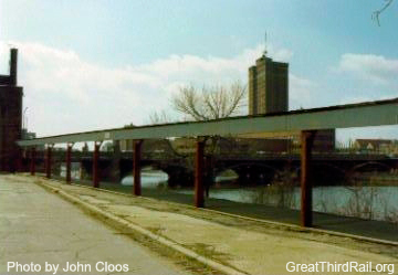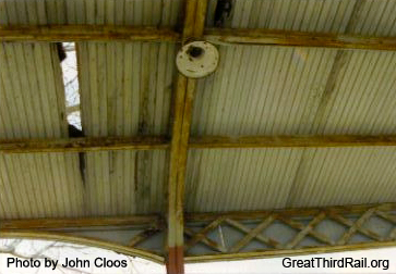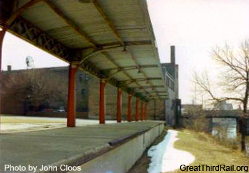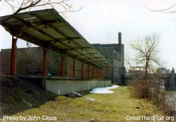 Following the suspension of passenger service and the subsequent abandonment of the railroad, the high-level platform and canopies were left standing and were unused. After sitting in this state for thirty four years, Bob Bennett, an Aurora resident and Midwest Electric Railway Museum member, began making inquiries with city officials regarding moving the canopies to the museum in Mt. Pleasant, Iowa. In October 1991, before any arrangements could be made, the platform and canopies were demolished.8
